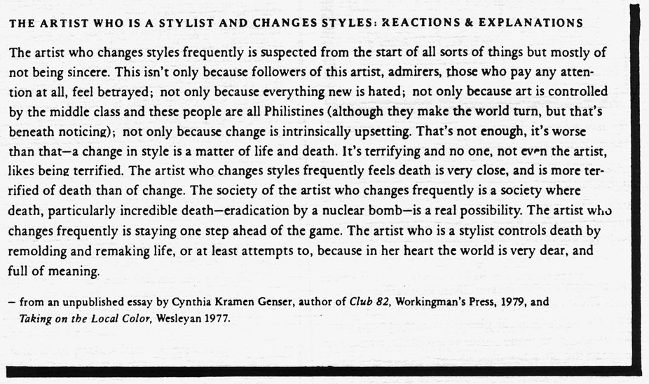 With this issue of HOW(ever) we begin Volume III. For those of you who have supported us from the beginning, we are most grateful. For those of you who want to continue to receive H(er) or to give a subscription to a friend, colleague or library, our rates are $7.00 for individuals and $9.00 for libraries and institutions. For libraries interested in purchasing the complete series, beginning with Vol. I, we have a limited number of archival sets available. Single copies are not for sale, except on a limited local basis, nor are free sample copies available. Subscription checks should go to HOW(ever), c/o Jaffer, 871 Corbett, San Francisco, CA 94131. No further reading of poetry manuscripts will take place until October, 1986, due to special issues already planned for Nos. 2 and 3 of Vol. III. Kathleen Fraser will be on sabbatical from February through August. Editorial correspondence will be forwarded. Material for