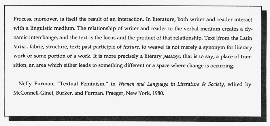 , edited by Shirley Neuman and Smaro Kamboureli (both critic theorists of women's writing) is slated for April (1987) publication from NuWest Press, Canada . . . Out from Indiana University Press: