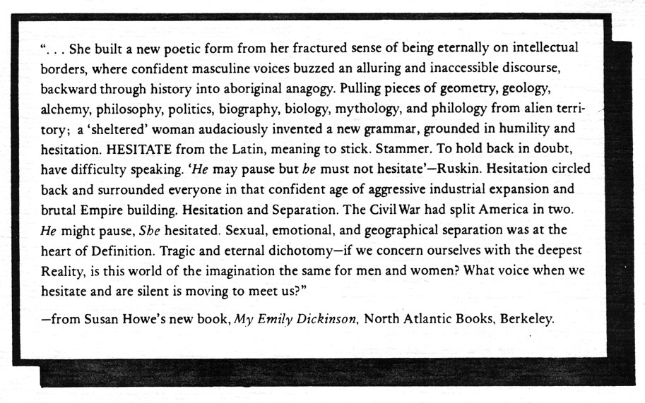 free sample copies available. Subscription checks should go to : HOW(ever) , c/o Jaffer, 871 Corbett,